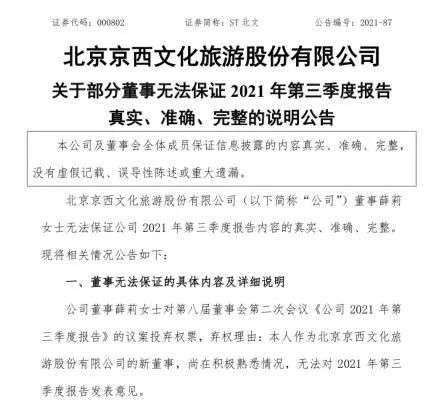 然而财报发布同时ST北文还发出了《部分董事无法保证2021年第三季度报告真实、准确、完整的说明公告》,这也让看似乐观的财报数据变得扑朔迷离。眼下正面临权力更迭的ST北文,恐怕还要乱上一阵。