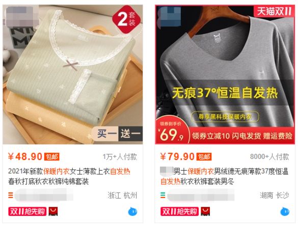 这些自发热内衣,面料不同、款式多样,价格不等,卖家还声称使用某种黑科技材料,保暖效果是普通内衣的数倍。