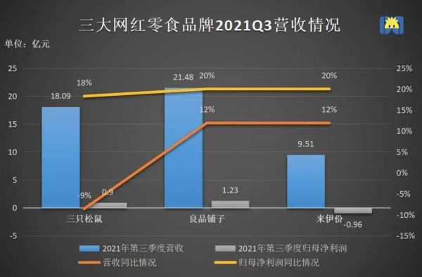 具体来说,三只松鼠虽以70.70亿元的营收领先,但比上年同期减少2.23%;良品铺子咬得很紧,营收65.69亿元,较去年同期增加18.78%;来伊份营收最少,30.5亿元的收入与去年同期近乎持平,仅微增1.71%。