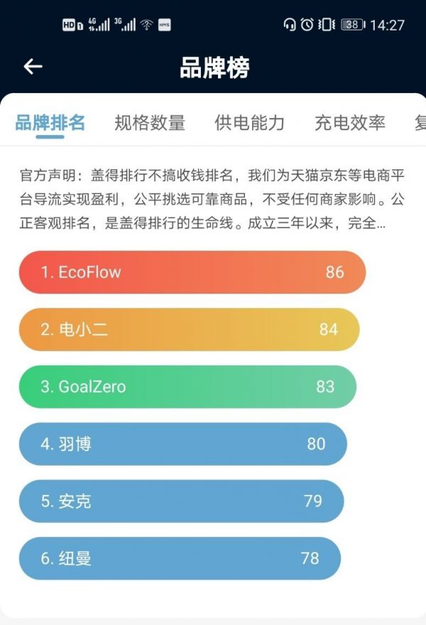 由于产品定位的原因,居民在只为满足应对停电需求而购买商品时,会更多关注“经济实惠”。但如果将户外工作、自驾游、露营等需求都进行考虑的话,产品性能和功能设计将会成为消费者买单的第一要素,此时价格的权衡比重将会减轻。以盖得排行在今年5月份发布的榜单为例,EcoFlow正浩位居榜首。
