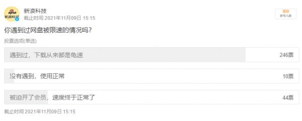 在新浪科技发起的一项关于网盘服务的微博调查中,有超过80%的用户表示遇到过网盘下载被限速的情况。在下载龟速之下,不少用户不得不开通了会员。
