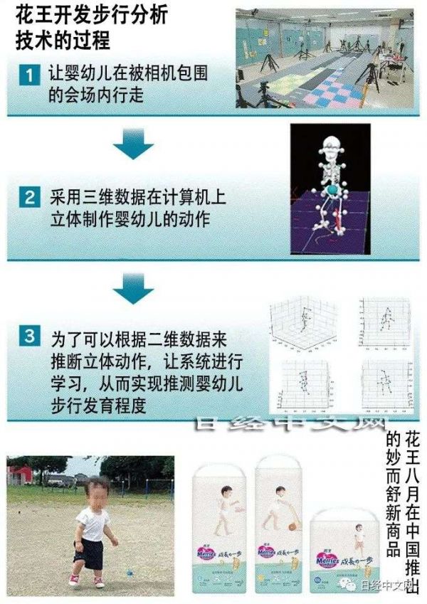 日本日用品企业花王(KAO)开发出了可利用智能手机轻松测量婴幼儿步行发育程度的技术。该公司建立了根据大约100名婴幼儿的数据来推断随着日龄增长步行如何变化的推断模型。消费者根据智能手机拍摄的视频也可以判断出婴幼儿的发育情况。有很多宝爸宝妈为孩子的步行发育而烦恼。这项技术将有利于减轻类似思想负担。