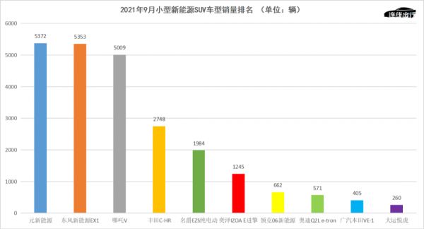 2021年9月小型新能源SUV车型销量排名,数据来源于乘联会,连线出行制图