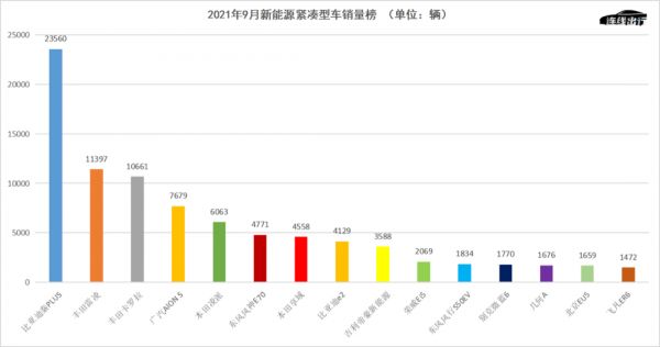 2021年9月新能源紧凑型车销量榜,数据来源于乘联会,连线出行制图