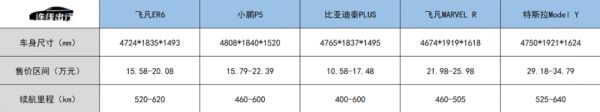 续航里程方面,ER6为520-620公里,MARVEL R为460-505公里。这样的续航目前已是众多车型都可做到的水平,比如同为紧凑型的小鹏P5和比亚迪秦PLUS的最大续航都可达到600公里,而同为中型SUV的特斯拉Model Y续航最大达到了640公里。