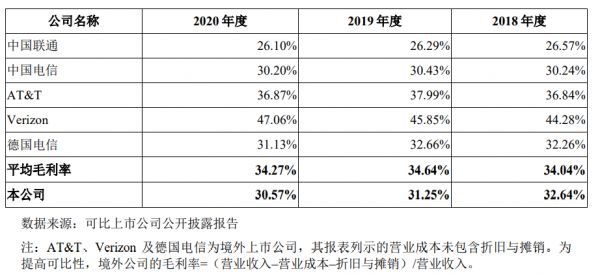 并且从毛利率上来看,中国移动也在三者中居于领先。2020年,中国移动毛利率为30.57%,中国电信为30.20%,中国联通为26.10%。不过由于中国移动在通信网络建设方面投入较大,网络覆盖和网络质量处于全球领先地位,资本开支水平相对较高,承担了较多的折旧成本及运维成本,毛利率低于境外可比上市公司。