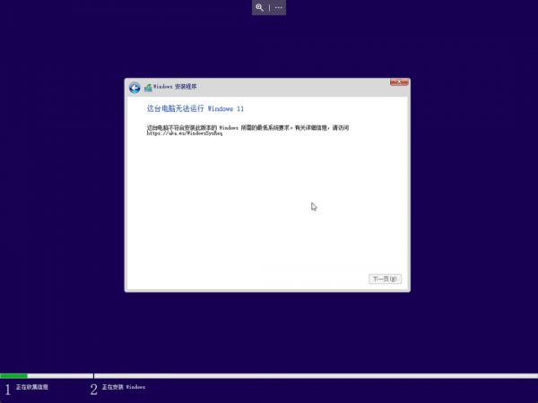 但对于不满足 Windows 11 硬件要求的电脑,第一种方法无法绕过,而第二以及第三种办法,会在安装程序中的硬件检测这个步骤时弹出以下检测结果并让安装升级过程终止。