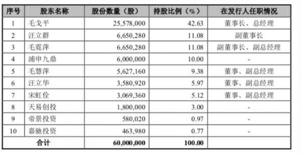 毛戈平公司大致上更像一家“夫妻店”,毛戈平夫妇持股53.71%,是公司实控人。除此之外,天眼查上面的数据显示,曾有两家投资机构也曾经参投过毛戈平,2010年新开发和普华资本共同投资的5850万元战略融资,以及2015年九鼎投资进行的600万元股权转让。