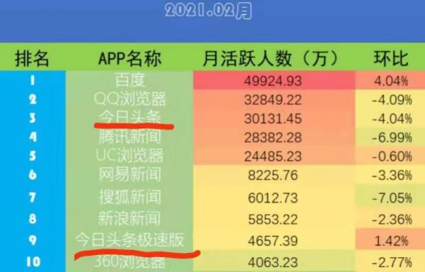 以流量算法为杀手锏、以头条抖音为第一增长曲线的字节,在政策监管强化的形势下,核心支撑力量单薄。以抖音为代表的短视频用户增长率急速下滑,头条的月活跃人数也在持续下降,仅靠极速版支撑。