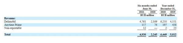 目前,公司主要收入来源为Delimobil 业务。2019-2020年度,Delimobil 业务占公司总营收的 90.8%、96.9%。