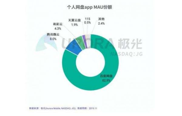 目前百度网盘仍是个人网盘App的绝对老大,极光大数据《2019年个人网盘行业研究报告》显示其2019年11月月活用户数量达到8703万,占据89.2%的市场份额。
