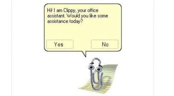 Clippy 最开始是在微软的 Office 97 工作,作为内置的小助手帮助新用户使用 Office。但它能帮的忙很有限,偏偏还喜欢一惊一乍。每当你在文档或电子表格上工作时,它都会不由分说地突然出现,即使你不需要它。