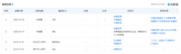 据天眼查数据显示,自2013年成立以来,飞书深诺曾获得多轮融资,投资方包括完美世界、二六三网络、嘉蓝投资、赢创投资、越云投资、湖南文化旅游等。2020年7月,飞书深诺获得达晨和洪泰的C轮融资,融资金额1.6亿人民币,在此之前A轮融资金额为2780万元,B轮、分别为1.3亿元。