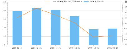 美好蓝图的背后,鞍重股份的盈利能力逐年下滑,短短几年间,公司的毛利率由40%左右骤降至如今的18%。单看公司主营的重型机器制造业务,下滑趋势也非常明显,2020年,公司重型机器制造业实现收入同比下降26.7%,销量下降38.4%。
