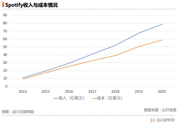 即使没有了独家代理,版权也不见得会便宜多少,因为议价权还是掌握在唱片公司手中。一方面,用户跟的是音乐而不是平台,另一方面,音乐平台也没有规模效应。Spotify拥有3.5亿用户,但随着收入增加,成本依然匀速上涨。