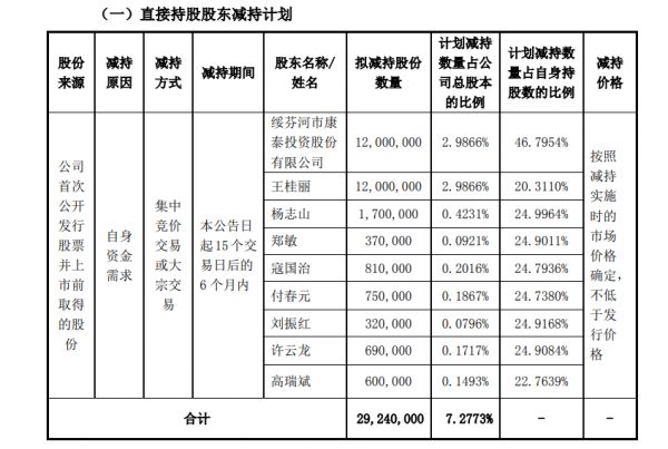 市场分析认为,康泰医学的股价在8月底暴跌,与该公司高管集体减持也有关。8月24日,康泰医学发布公告称,绥芬河市康泰投资股份有限公司、王桂丽、杨志山、郑敏等股东自公告日起15个交易日后的 6个月内拟通过集中竞价交易或大宗交易减持。上述股东本次合计计划减持数量不超过2924万股,占公司总股本的7.28%,减持原因均为自身资金需求。