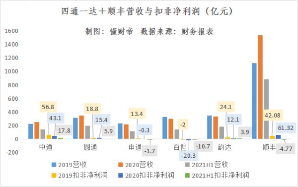 今年上半年,申通、百世仍然处于经营亏损状态。而令人意外的是,顺丰的扣非净利润也转为净亏损4.77亿元。