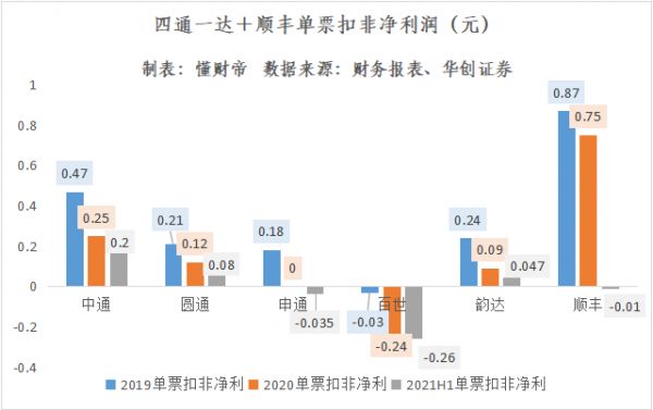 虽然市场火热,但在价格战背景下,六家公司上半年的单票扣非净利润继续下滑。对于申通、百世、顺丰来说,相当于“接一单,送一单,亏一单”。