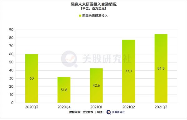 另外,图森未来的研发投入继续呈现一贯的增长状态,Q3研发投入达到8500万美元,较2020年同期的同比增长41%,较今年Q1已经翻倍,这将继续支持它在L4级自动驾驶技术上的进步,但也会带来相应的压力。