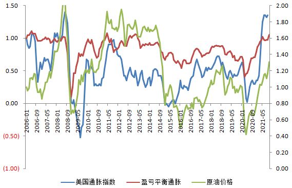 很大程度上,大宗商品价格、整体通胀指数和盈亏平衡通胀率不就是一回事么?他们就像是同一个人在不同镜子中的映射或者说虚拟分身一样。
