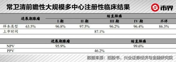 常卫清对外宣称的NPV阴性预测值是99.6%,即如果显示为阴性,则99.6%的概率未患病,因此无需再进行肠镜检查;PPV阳性预测值是46.2%,即结果如为阳性,则检测者者有46.2%的概率患有结直肠癌或腺瘤。