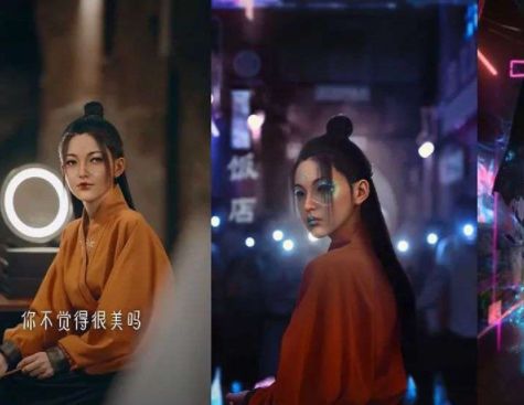 在这条两分钟的视频里,画面、剧情、特效都有电影质感,虚拟人和现实人流畅交互,亦幻亦真,兼具“赛博朋克和中式奇幻”风格的故事就此展开。