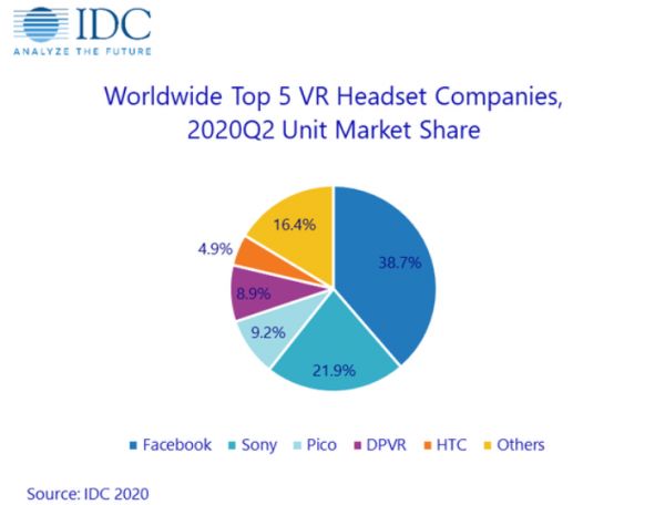 转型后HTC的发展状况不如预期,与其推出的HTC Vive市场表现不佳有关。根据IDC的数据显示,2017年第二季度全球VR和AR出货量前五名分别是三星、索尼、Facebook、TCL和HTC,到了2020年第二季度,Facebook成为了市场第一,而HTC仍排在市场第五,份额仅剩下4.9%。
