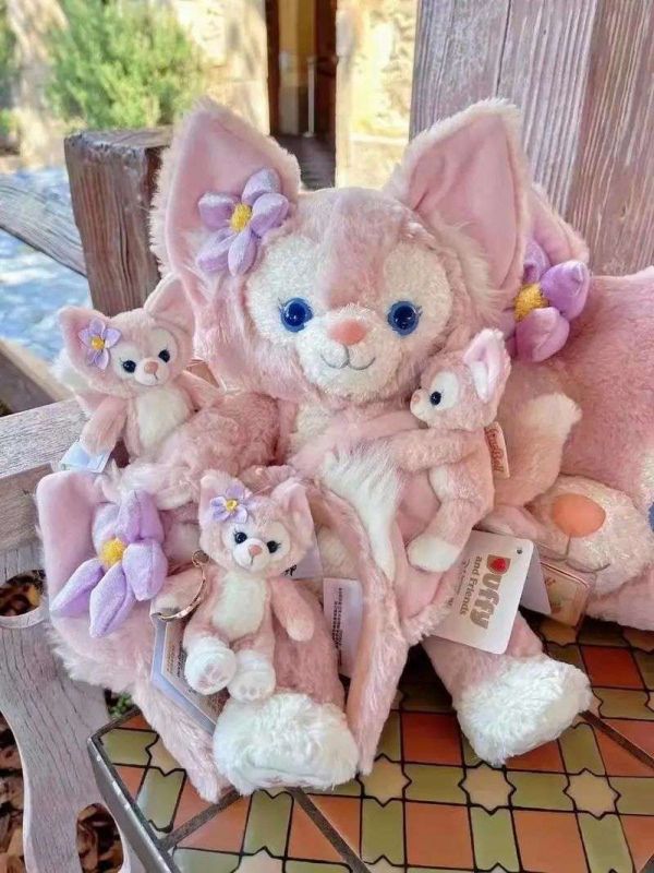 达菲家族成员,左起依次为玲娜贝儿、奥乐米拉、杰拉托尼、达菲、雪莉玫、星黛露、可琦安。图片来自于达菲友你微博
