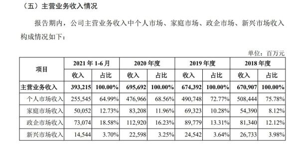 移动主营业务收入分类 信息来自招股书