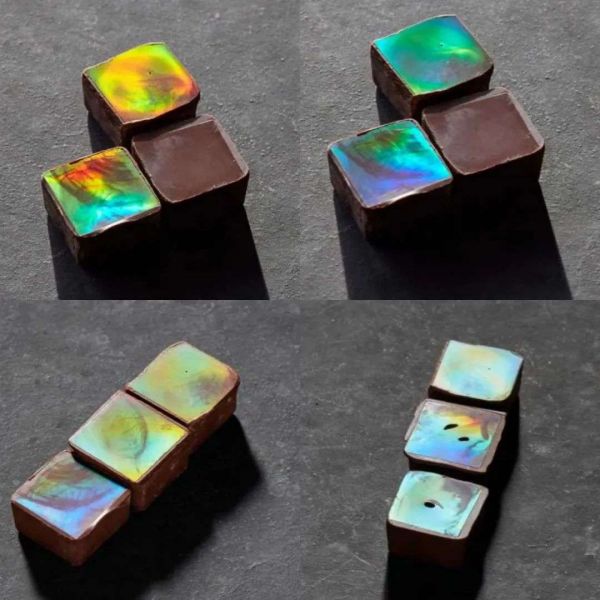 在进行了多种尝试之后,科学家们成功地在没有添加任何色素的情况下,在巧克力表面制造出了这种五彩斑斓的闪光。这款看似有魔法的“彩虹巧克力”,在不同角度的光照下都会变幻出不同的彩色光线。