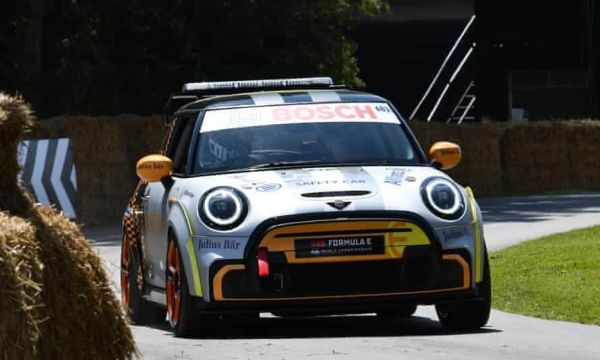 电动方程式赛车的安全车。据估计,十年内电动汽车的数量将达到1.45亿。图片来源:The Guardian