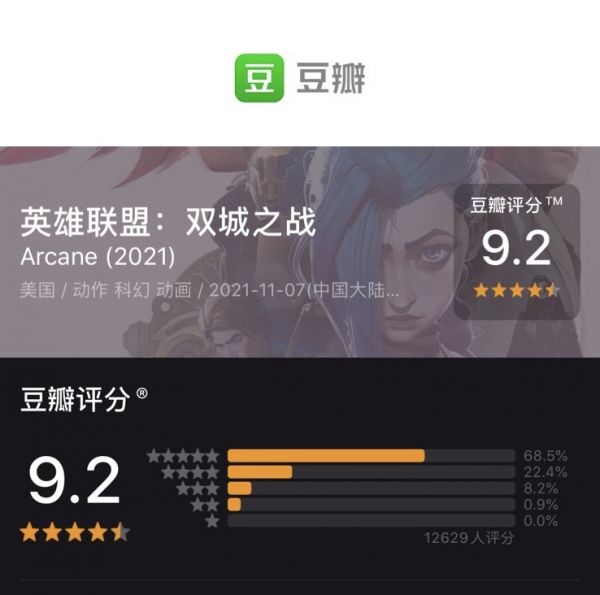但跟EDG深夜夺冠朋友圈刷屏与霸榜19个微博热搜的气势相比,《英雄联盟》动画剧集《双城之战》的排面就没有那么突出了。