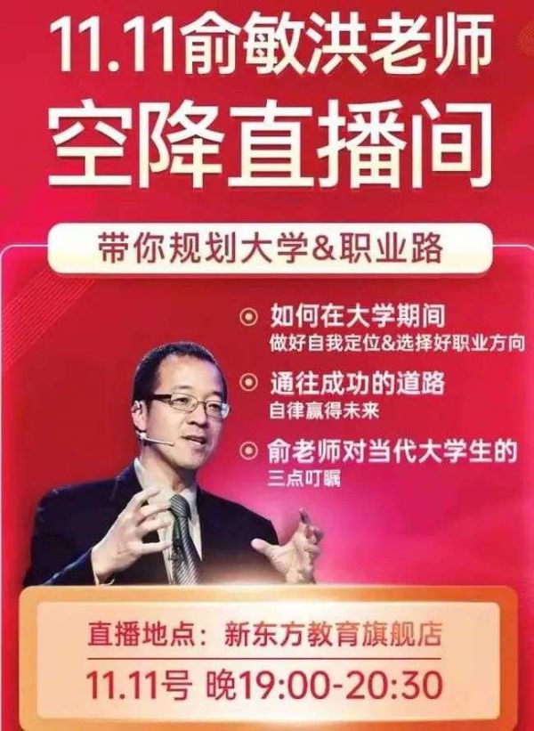 此外,今年天猫“双十一”直播带货活动,也将第一次出现俞敏洪的身影。