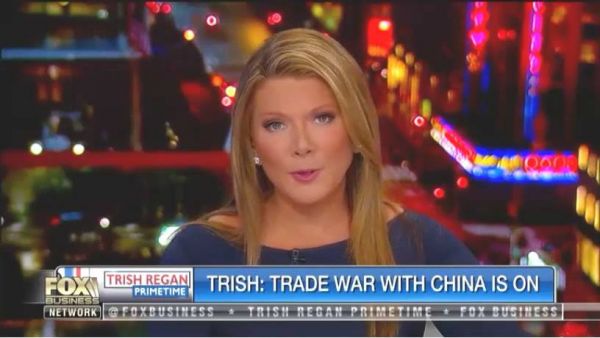 美国女主持人Trish Regan在Fox Business频道自己的电视栏目“Trish Regan Primetime”中专门谈及了中美争端。这一栏目的内容主要是女主持人Trish Regan谈一些自己(和其团队)的分析和观点,大致上就是主张应该继续对中国施压。