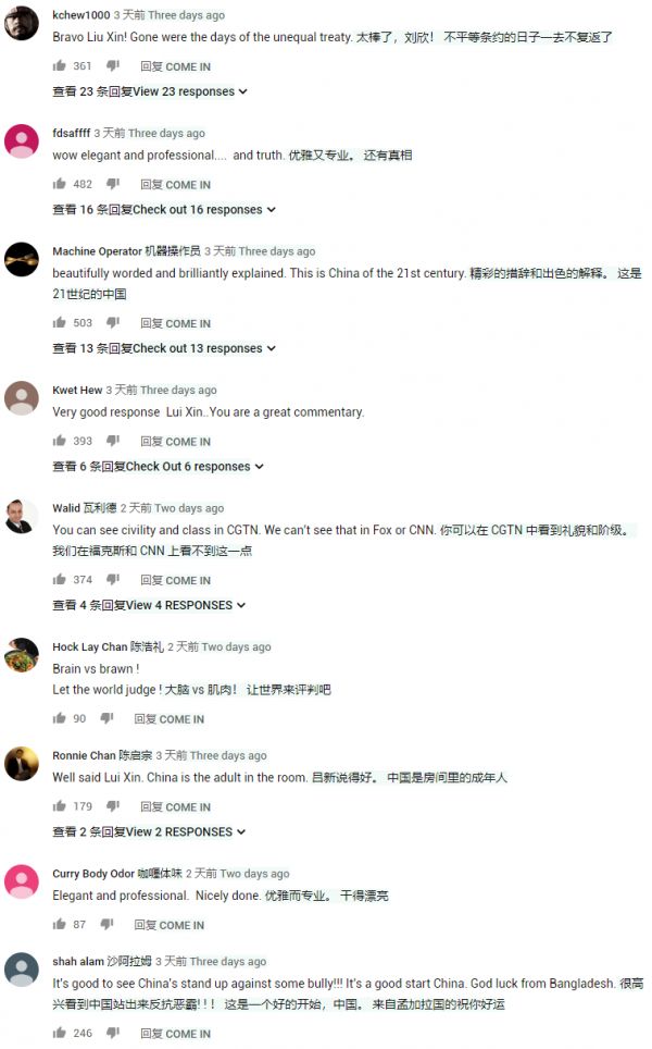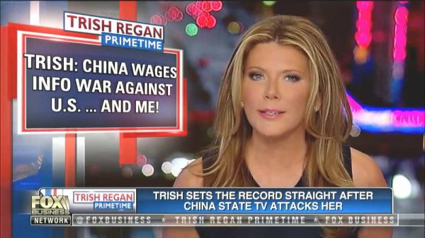 Trish Regan在看到刘欣在节目中所说的内容之后,选择直接在当天的节目中直接反呛刘欣,更是在节目中打出了“China state-run media targets Trish Regan(中国国有媒体针对Trish Regan)这样的字眼”。