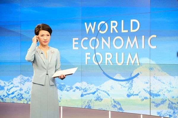 刘欣在瑞士达沃斯世界经济论坛期间的工作照。 图:澎湃新闻记者 周娜