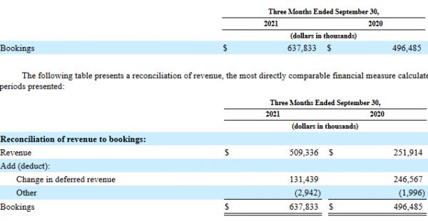 需要注意的是,Roblox将预订收入定义为“收入加上期间递延收入的变化和其他非现金调整。”预定收入体现为其网站上销售的虚拟货币,这可能被视为递延收入,三季度的预定收入为6.37亿美元。