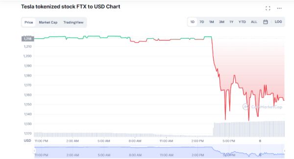 据CoinMarketCap,马斯克的民调结果出来后,特斯拉通证化股票(Tokenized Stock)下跌了5%以上。