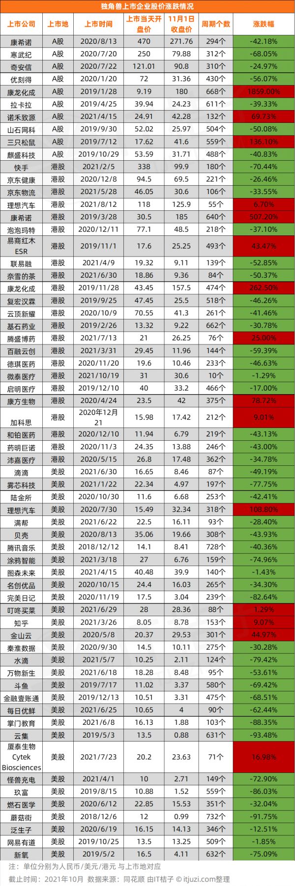8 成独角兽上市后股价「跌跌不休」,快手、斗鱼跌幅超 50%