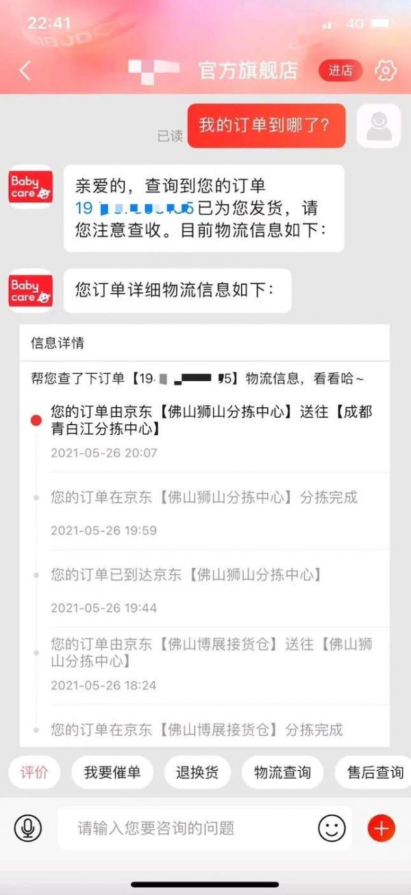 催发货和物流状态查询,是家居行业最高频的咨询场景。传统的客服无法针对具体的物流状态和节点给出不同的回复。而京东智能客服言犀可以自动获取物流轨迹并推送物流信息,极大提升物流咨询场景的解决效率。