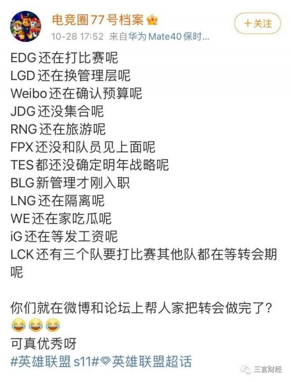 日前,还有网友爆料几个战队的近况。其中,“IG还在等发工资”的消息引起网友一波热议。