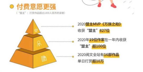 具体来看,连载于起点中文网的都市异能类网络小说《万族之劫》,以827位盟主成为2020盟主MVP,所谓盟主是指打赏作品超过1000人民币的读者。而在阅文全站,2020年有16部作品的单日打赏超过10万。