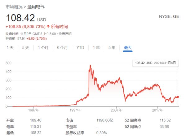 由于持续低迷,通用电气2018年从道琼斯工业指数中剔除。而自1907年以来,通用电气一直是道指30只成分股之一。