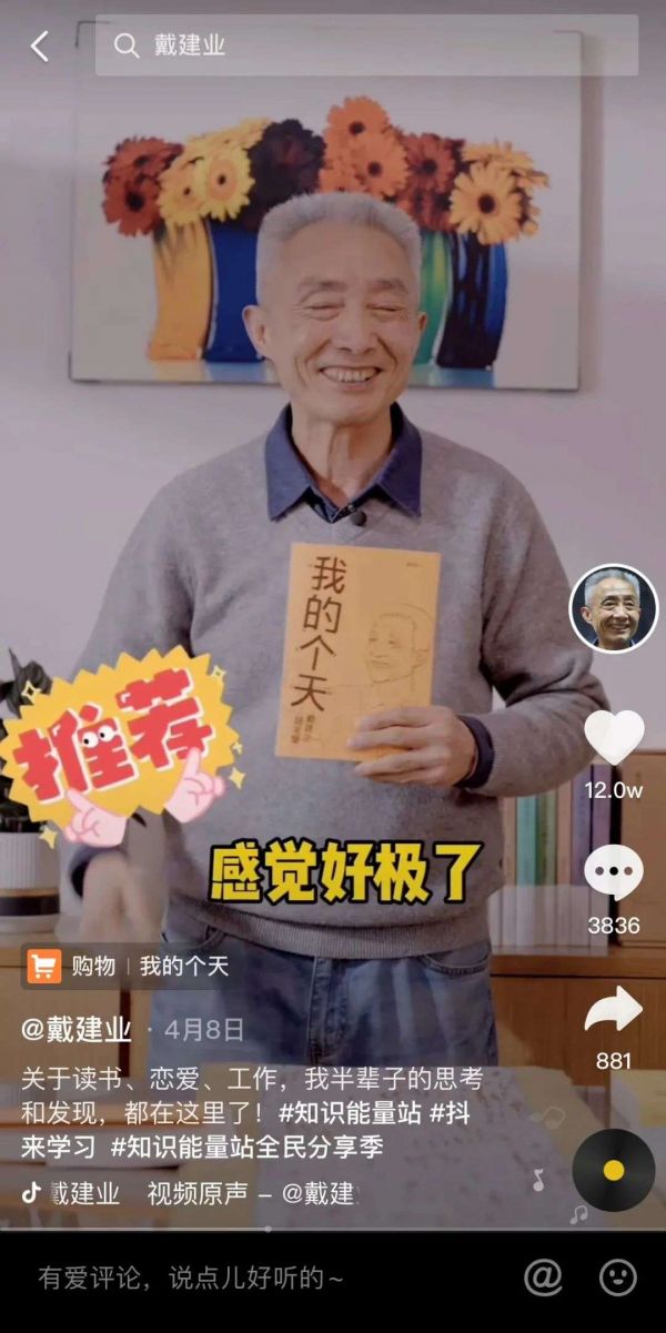 在抖音上,戴建业一共上线了20套由他主编或创作的书籍商品,他也会直接拍摄相关的短视频推荐自己的书。