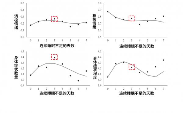 而且随着睡眠不足天数的增多,负性情绪的反馈也会增多,而正性情绪也会随之减少。