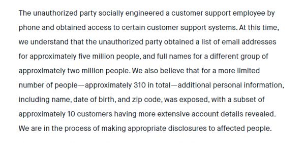 在本次事故中,Robinhood 正是在员工安全意识方面出了问题。据该公司透露,在11月3日,黑客以社会工程学的手段,通过电话取得了一名客服人员的信任,成功获得了客服系统的登录权限,并最终导出了大约500万名用户的电子邮箱。