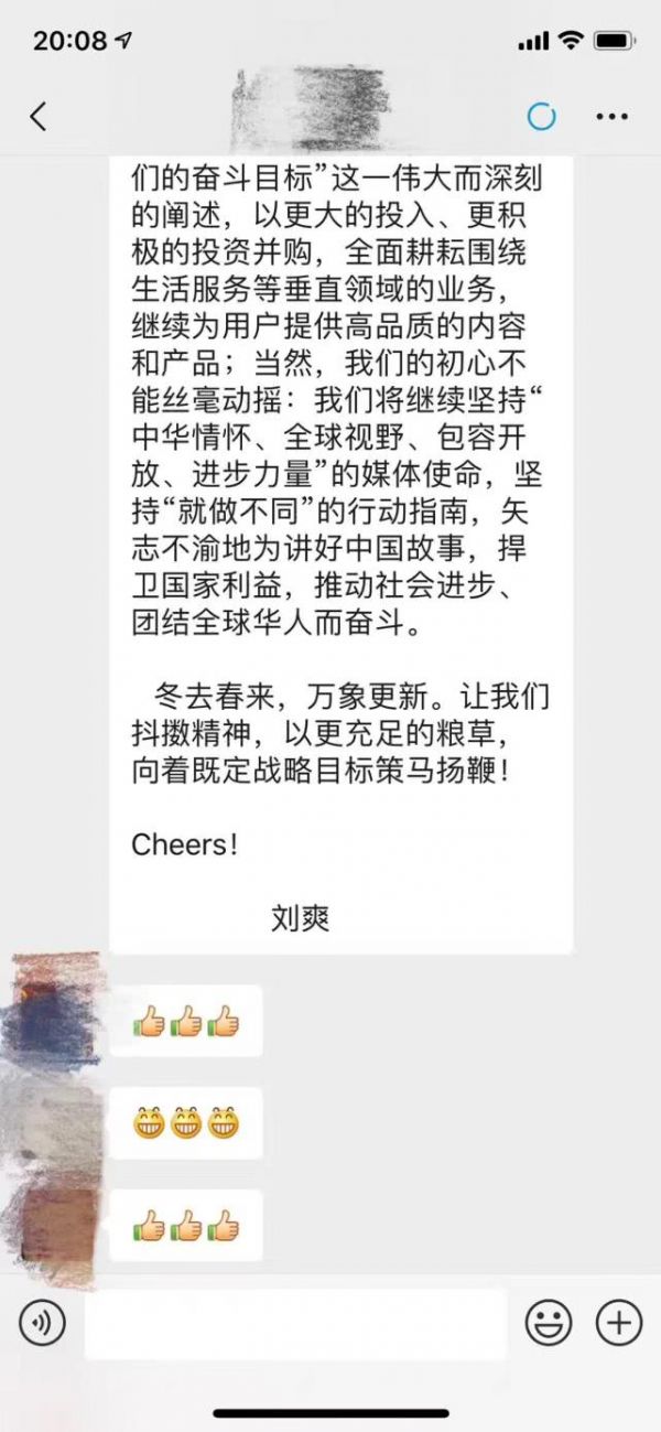 以下为凤凰新媒体CEO刘爽内部信截图: