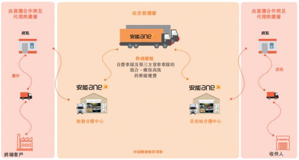 三人结成“铁三角”后,创新推出了货运合作商的平台模式,即“中心直营+网点加盟”。据IPO招股书解释,揽件与派送环节交给合作商或代理商,集散分拨、路线规划、干线运输均由安能物流运营。