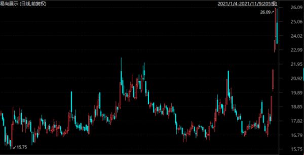 受“元宇宙”概念刺激,易尚展示11月3日来收获4个涨停板,但11月9日跌停。