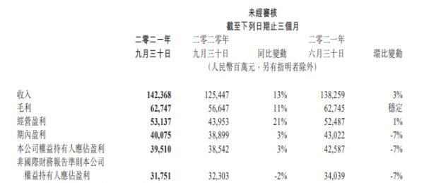 腾讯2021年Q3简要业绩
